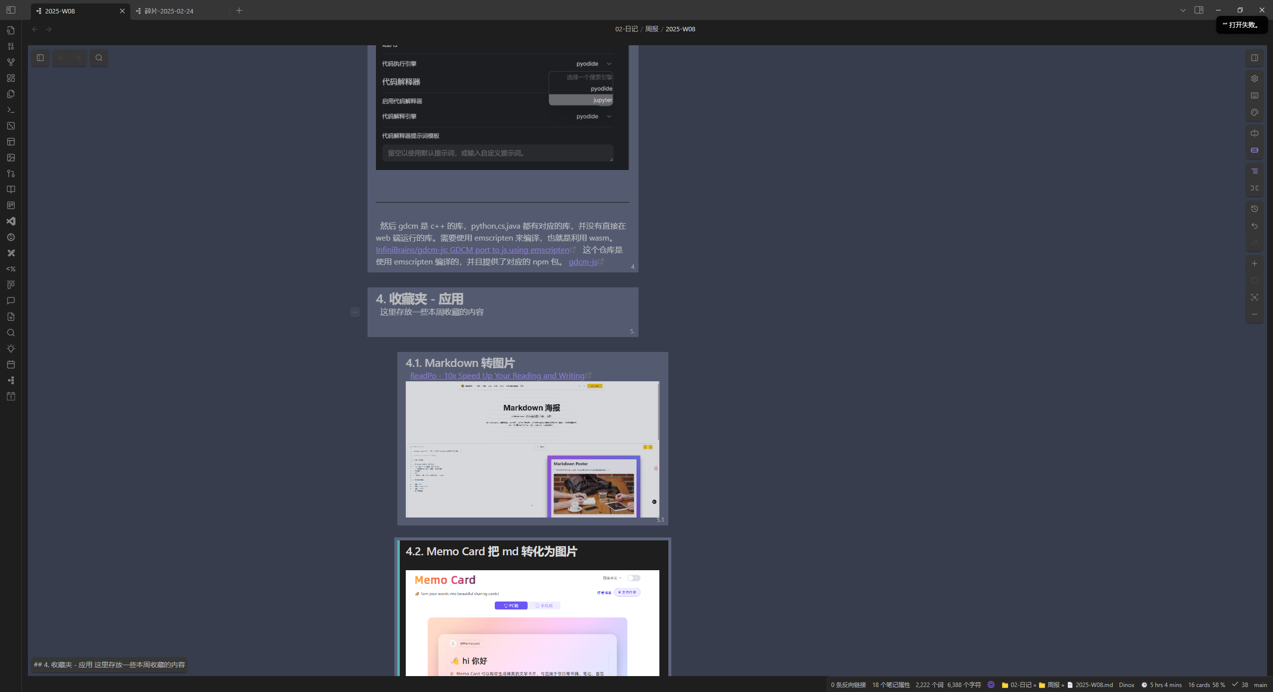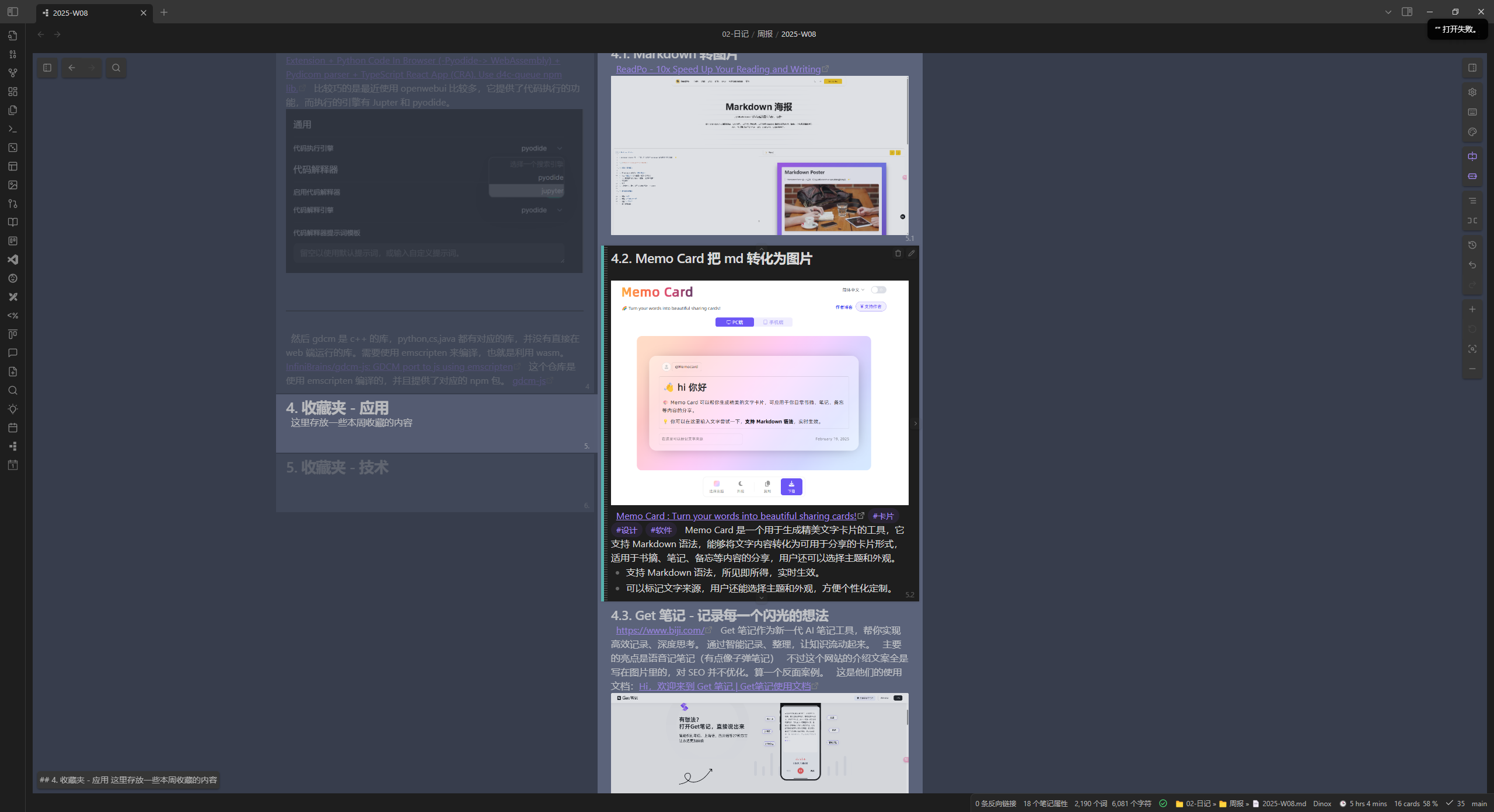 然后内容记录的方式也发生了改变,之前在 Gingko Writer:在 AI 随便生成 20 万字的时代,“生而为人”该如何写作? 这篇博文中第一次了解到 Gingko 这个软件。