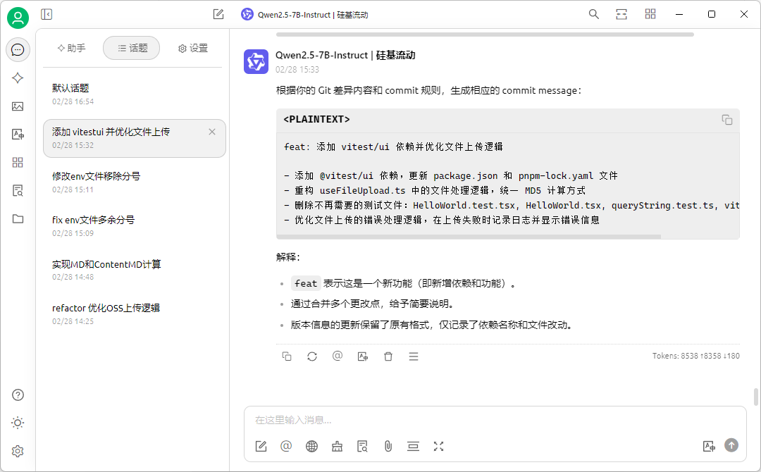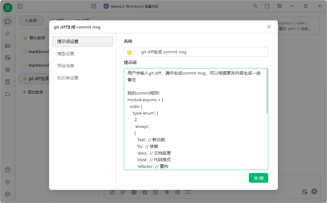 - 可以使用 Cherry Studio 创建 commit msg 生成助手